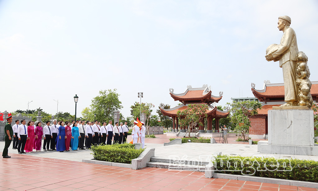 Trong không khí trang nghiêm, thành kính, đoàn đại biểu của tỉnh đã dâng hương, dâng hoa, dành phút mặc niệm và bày tỏ lòng biết ơn vô hạn tới công lao trời biển của Chủ tịch Hồ Chí Minh - vị lãnh tụ thiên tài của Đảng và Nhân dân ta, người thầy vĩ đại của cách mạng Việt Nam, Anh hùng giải phóng dân tộc, Danh nhân văn hóa thế giới. Người đã sáng lập và rèn luyện Đảng Cộng sản Việt Nam, hy sinh trọn đời cho sự nghiệp giải phóng dân tộc, đấu tranh cho hòa bình, hạnh phúc của Nhân dân Việt Nam và Nhân dân thế giới.