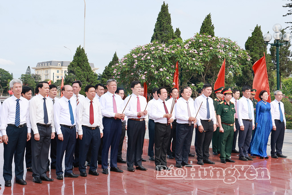 Các đồng chí lãnh đạo tỉnh cùng các đại biểu dâng hương tại Đài tưởng niệm các anh hùng liệt sĩ tỉnh (phường Phố Hiến).