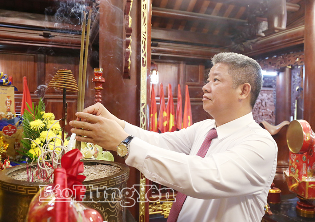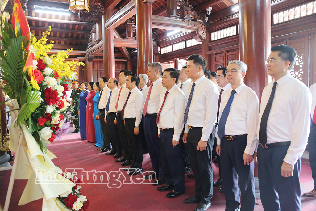 Dự lễ dâng hương có các đồng chí: Phạm Quang Ngọc, Ủy viên Ban Chấp hành Trung ương Đảng, Bí thư Tỉnh ủy; Trần Quốc Toản, Phó Bí thư Thường trực Tỉnh ủy, Chủ tịch Ủy ban MTTQ Việt Nam tỉnh; Trần Quốc Văn, Phó Bí thư Tỉnh ủy, Chủ tịch HĐND tỉnh; Nguyễn Mạnh Quyền, Phó Bí thư Tỉnh ủy, Chủ tịch UBND tỉnh; các đồng chí Ủy viên Ban Thường vụ Tỉnh ủy; lãnh đạo HĐND, UBND tỉnh, Ban Thường trực Ủy ban MTTQ Việt Nam tỉnh, Đoàn đại biểu Quốc hội tỉnh; lãnh đạo các ban, sở, ngành, đoàn thể của tỉnh.