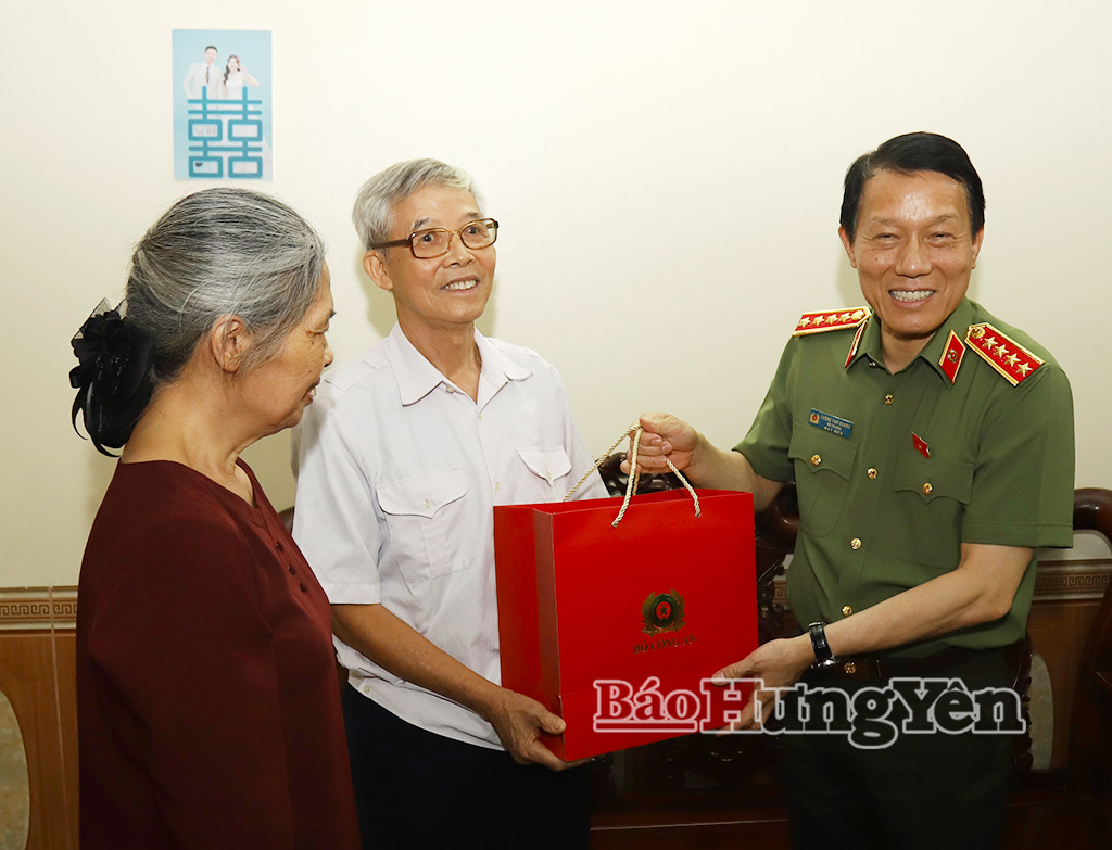 Đại tướng Lương Tam Quang, Ủy viên Bộ Chính trị, Bộ trưởng Bộ Công an đến thăm, tặng quà gia đình thương binh Đoàn Văn Vàng (phường Phố Hiến).