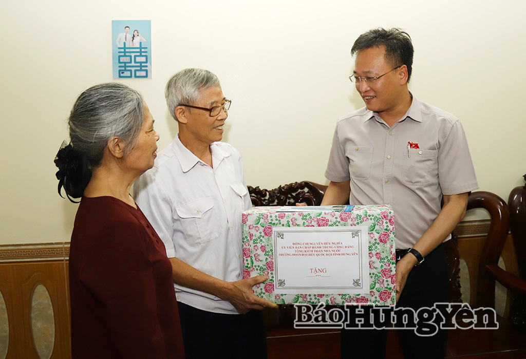 Đồng chí Nguyễn Hữu Nghĩa, Ủy viên Ban Chấp hành Trung ương Đảng, Tổng Kiểm toán Nhà nước, Trưởng đoàn Đại biểu Quốc hội tỉnh Hưng Yên trao quà tặng gia đình thương binh Đoàn Văn Vàng.
