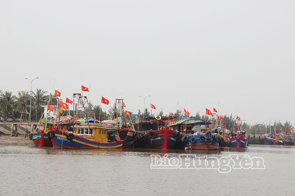 Tàu cá của ngư dân tỉnh Hưng Yên neo đậu tại Cảng cá cửa Lân.