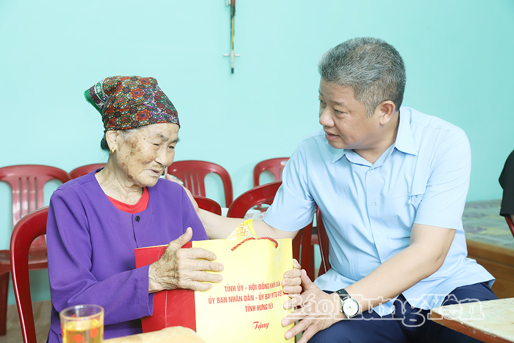 Đồng chí Nguyễn Mạnh Quyền, Phó Bí thư Tỉnh ủy, Chủ tịch UBND tỉnh tặng quà cho hộ bà Phạm Thị Luyên (thôn Huyền Sỹ, xã Vũ Thư).