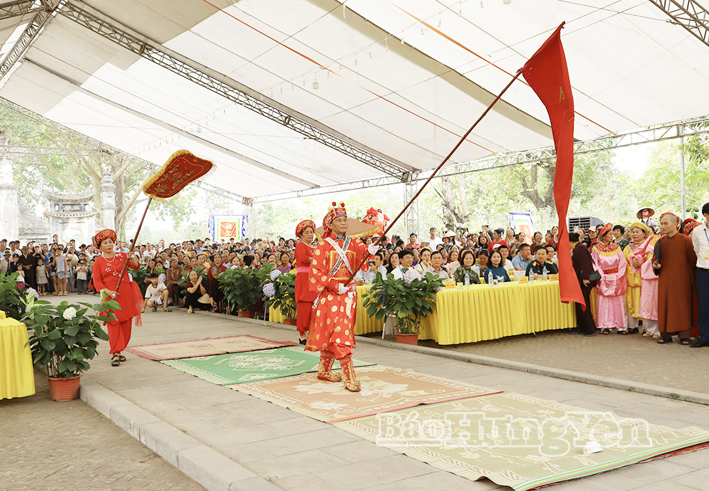 Nghi lễ phất cờ lệnh tại lễ hội chùa Ông.