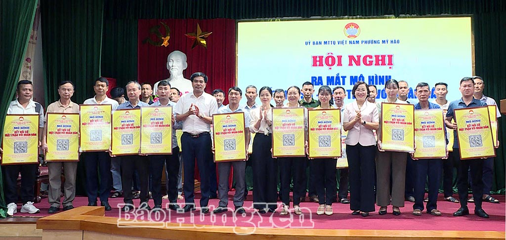 Lãnh đạo phường Mỹ Hào trao mã QR “Kết nối số - Mặt trận với Nhân dân” cho 24 tổ dân phố.