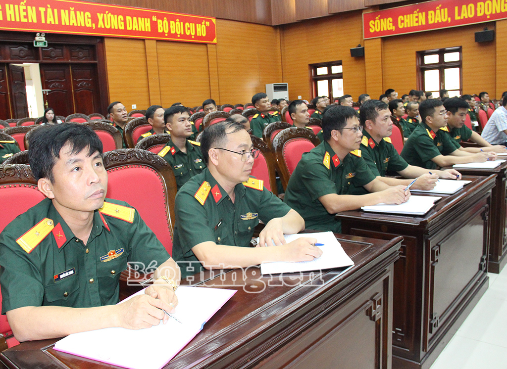 Các đại biểu dự hội nghị tập huấn tại điểm cầu Bộ Chỉ huy Quân sự tỉnh Hưng Yên.