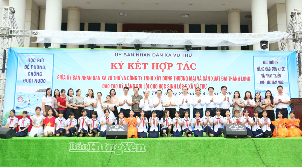 Theo thống kê, năm học 2025 - 2026, xã Vũ Thư có gần 800 học sinh lớp 5 đang theo học tại các trường tiểu học và liên cấp trên địa bàn. Trên cơ sở đánh giá thực trạng và nhu cầu thực tiễn, UBND xã Vũ Thư và Công ty TNHH Xây dựng, Thương mại và Sản xuất Đại Thành Long đã thống nhất ký kết hợp tác với 5 nội dung chính. Trong đó, tổ chức đào tạo kỹ năng bơi lội cho toàn bộ học sinh lớp 5 trên địa bàn xã theo lộ trình phù hợp, bảo đảm khoa học, an toàn và hiệu quả, phấn đấu 100% số học sinh hoàn thành chương trình đều biết bơi. Kết hợp giảng dạy kỹ năng bơi với trang bị kiến thức, kỹ năng phòng, chống đuối nước, kỹ năng cứu hộ cơ bản và kỹ năng tự bảo vệ bản thân trong môi trường nước…